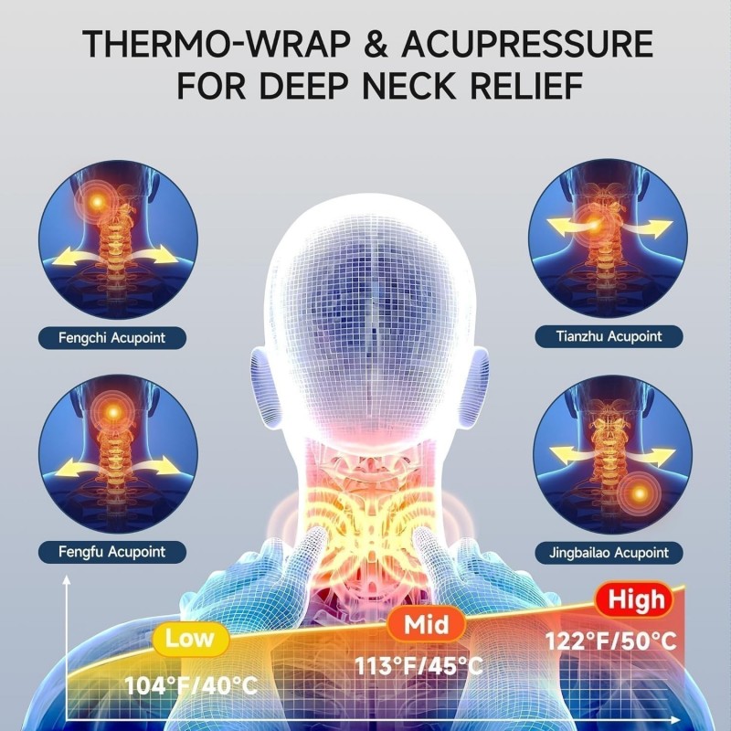 Targeted Muscle Therapy - With 8 integrated magnets, our cervical massager effectively stimulates 4 key acupuncture points, delivering significant relief from neck strain and discomfort, perfect for those suffering from chronic tension or soreness and promotes natural healing through deep tissue therapy.